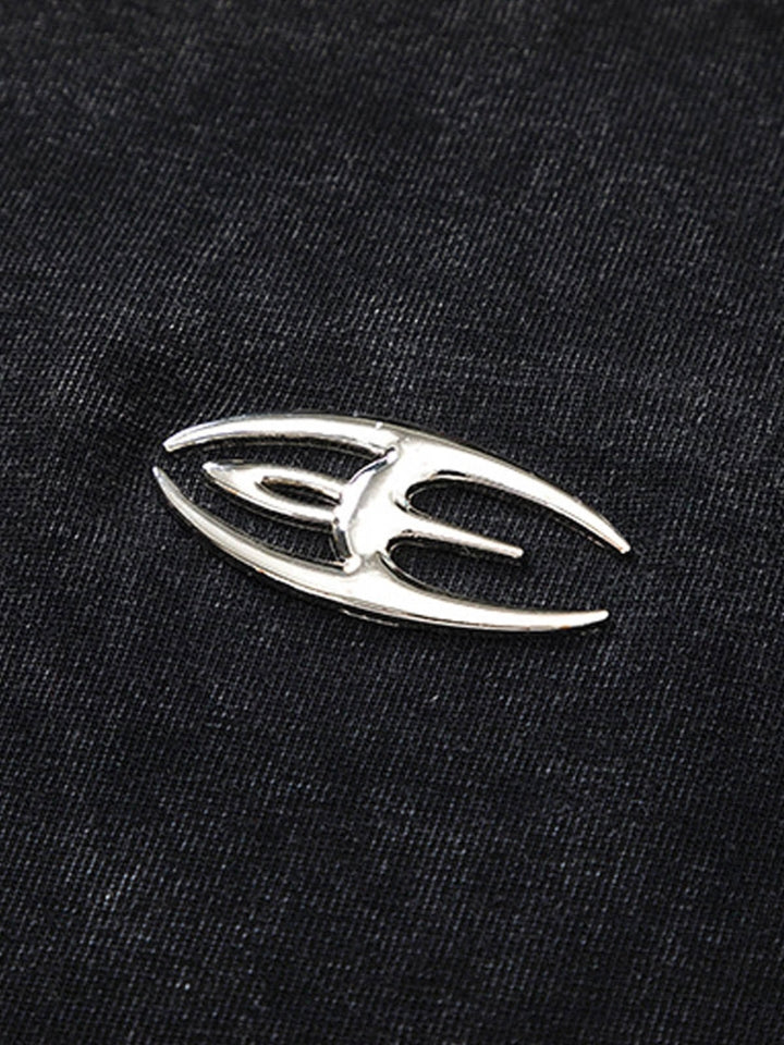 - Símbolo metálico centrado a la altura del pecho